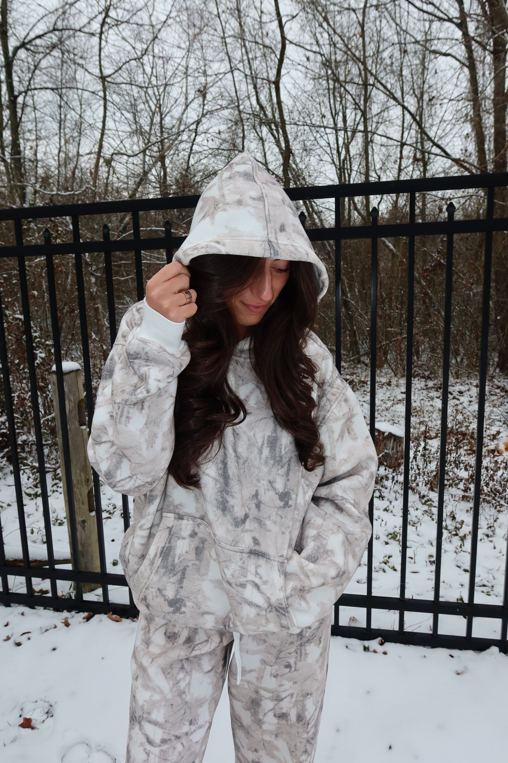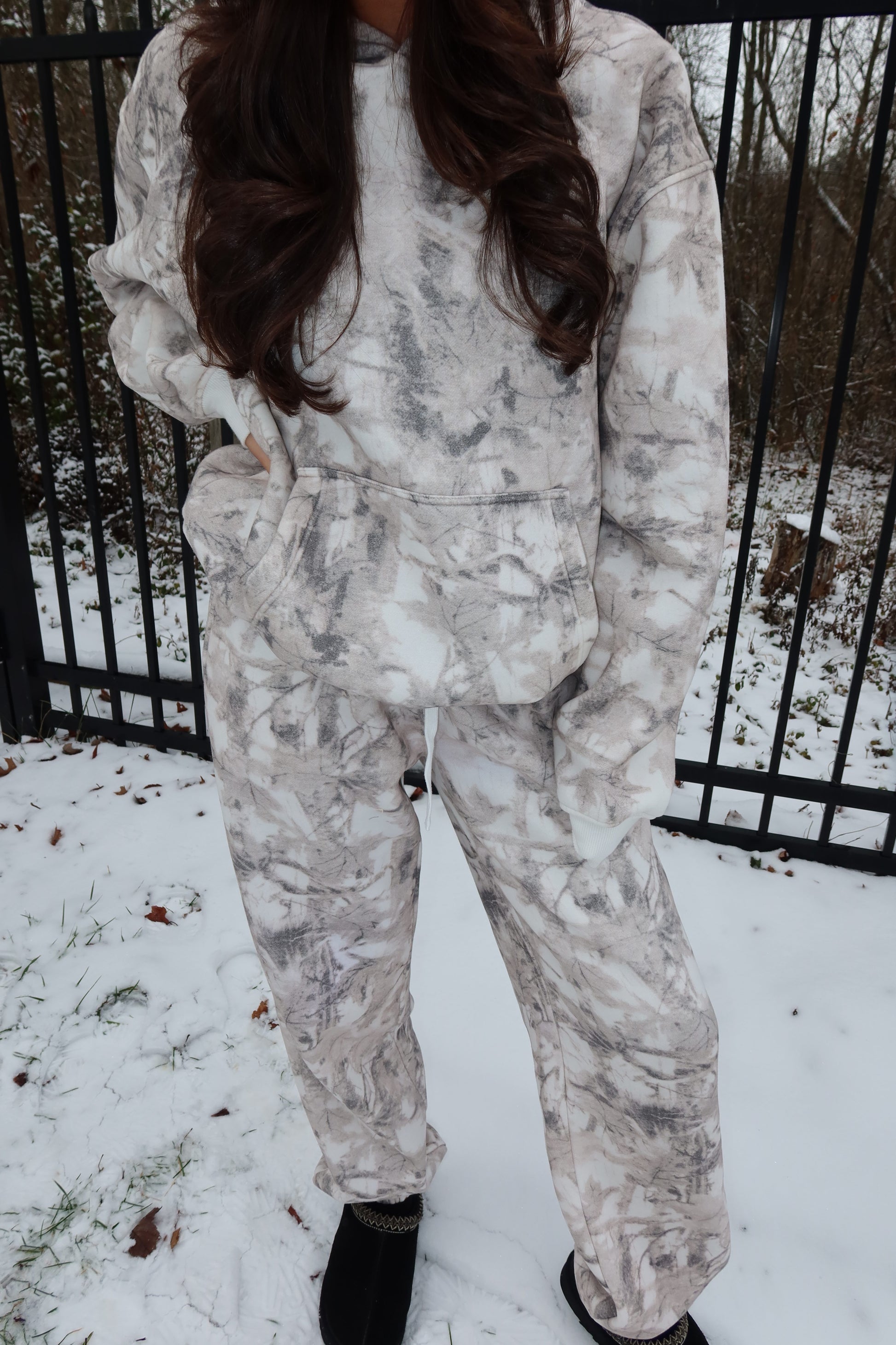 Meet your new off-duty favorite. Our Camo Comfort Set features a relaxed-fit hoodie paired with matching sweatpants, designed for ultimate coziness without sacrificing style. Crafted from a soft, plush fabric with a neutral camo print, this set is perfect for chilly days, lounging at home, or casual winter outings.